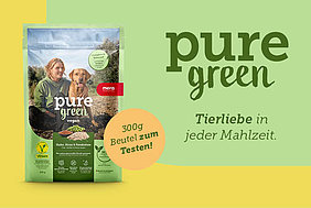 Wir wissen, wie wichtig dir das Wohl deines Hundes und der Umweltschutz sind. Deshalb haben wir 'pure green' entwickelt – ein pflanzliches Futter, das nicht nur liebevoll auf die Gesundheit deines besten Freundes achtet, sondern auch unseren Planeten schont. Dieses Futter verringert den CO₂-Pfotenabdruck um 60% im Vergleich zu herkömmlichen Fleischfuttermitteln und zeigt, dass uns das Beste für deinen Hund und die Umwelt am Herzen liegt.