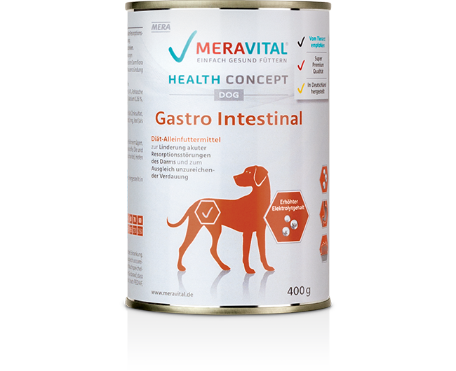 Besonders wenn dein Hund akuten Durchfall hat und bei sensiblen Hunden ist es besser, für einige Tage Schonkost zu verabreichen. Ideal ist ein Hundefutter, welches das erkrankte Verdauungssystem entlastet und den Aufbau geschädigter Partien fördert. Zu diesem Zweck wurde von Tierärzten und Ernährungswissenschaftlern MERAVITAL GASTRO INTESTINAL entwickelt. Es enthält besonders hochwertige Zutaten und weist eine leichte Verdaulichkeit auf und ist somit das ideale Hundefutter, wenn dein Hund Durchfall hat. Wertvolle Omega-3-Fettsäuren sorgen darüber hinaus dafür, dass Entzündungen gehemmt, die Darmflora wieder aufgebaut und das Immunsystem aktiviert wird. In der aktuen Phase ist MERAVITAL GASTRO INTESTINAL also das Mittel der Wahl, um den Durchfall bei deinem Hund schnell wieder in den Griff zu bekommen und den Magen-Darm-Trakt auf gesunde Weise zu entlasten.