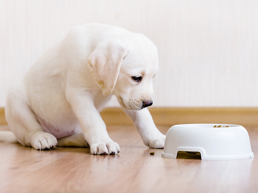 Tipp: Zwar reduziert sich bei einem Junghund mit zunehmendem Alter die Anzahl der Fütterungen – damit die Hunde-Ernährung erfolgreich verläuft, müssen die einzelnen Portionen aber immer größer werden. Hilfreich sind die jeweiligen Fütterungsempfehlungen – der Mensch sollte jedoch stets sein Tier individuell prüfen. Je nachdem, wie groß sein Bewegungsdrang ist, es viel drinnen oder draußen verbringt, ein kurzes oder langes Fell besitzt, muss die Ration möglicherweise angepasst werden, um die Hundeernährung optimal zu gestalten. Eine zu geringe Portion könnte zu einer Nährstoffunterversorgung und Mangelerscheinungen führen, während bei einer zu großen Portion die Gefahr eines zu schnellen Wachstums besteht.