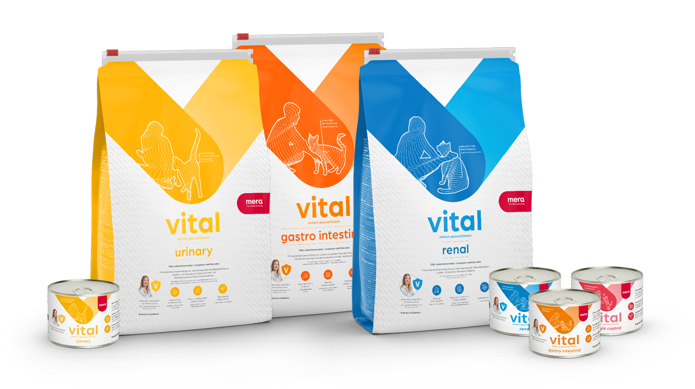 Entdeckt mit vital unsere hochwertigen Diätfutterprodukte, für die Behandlung von spezifischen Krankheiten der Katze und deren Symptome konzipiert sind. Mit unserer Erfahrung und unserem Wissen über die Bedürfnisse von Katzen haben wir in Zusammenarbeit mit Tierärzten die speziellen vital-Rezepturen entwickelt. Die hochwertigen Diätfutter sind die richtige Wahl zur Behandlung von Niereninsuffizienz, Magen-Darm-Erkrankungen, Harnwegserkrankungen, Allergien und Futtermittelunverträglichkeiten, sowie Übergewicht.*