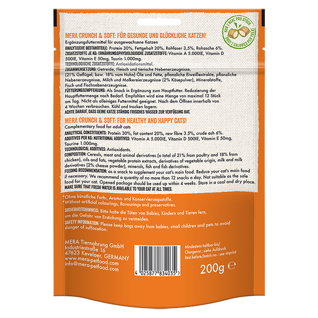 MERA Crunch & Soft Huhn & Käse - Der leckere und artgerechte Snack für echte Naschkatzen