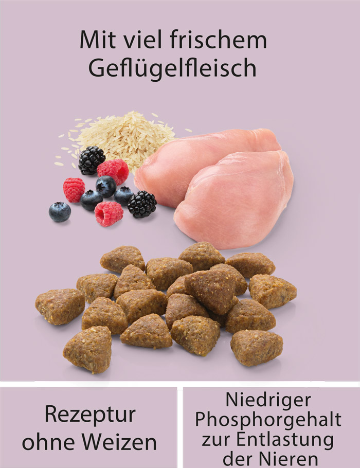 - Niedriger Phosphorgehalt zur Entlastung der Niere