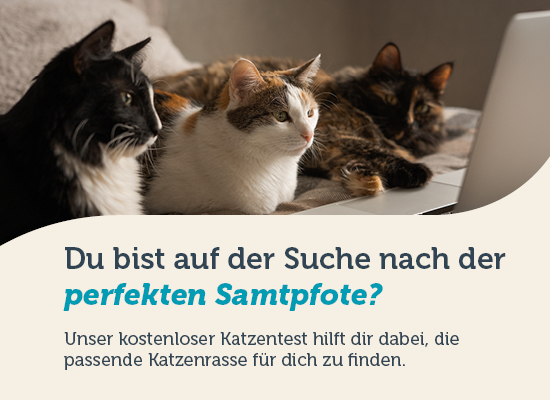 Das Wichtigste ist, dich gut zu informieren und die Katze vor der Adoption oder dem Kauf kennenzulernen. Persönlichkeit, Bedürfnisse und eure Chemie sollten zusammenpassen. Ein interaktiver Katzenrassen-Test kann dir helfen, Rassen zu identifizieren, die am besten zu dir passen.