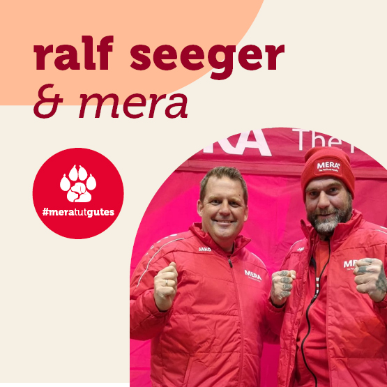 Aber auch bei unseren eigenen „mera tut Gutes“-Aktionen zögert Ralf keine Sekunde, um tatkräftig dabei zu sein. Beim RTL-Spendenmarathon im November 2021 kam er mit dem „Helden für Tiere“ Team vorbei, um bei der großen Joey Kelly Challenge Geld für bedürftige Kinder zu sammeln.
