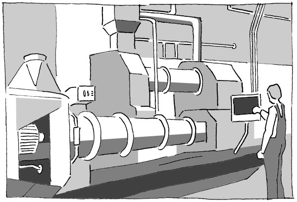 Danach wird es technisch: Per Computer wird berechnet, wie viel einer jeden Zutat für die Charge des zu produzierenden Futters benötigt wird. Die Rohwaren werden dann vermischt und in einer Mühle fein vermahlen. Frischfleisch wird der Mischung separat zugefügt.